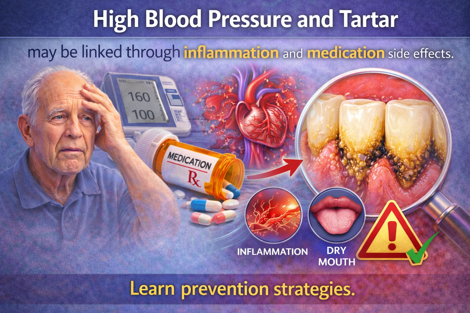High Blood Pressure and Tartar: High blood pressure primarily affects the cardiovascular system, but its impact may extend beyond the heart and arteries. Emerging research suggests that high blood pressure and tartar risk may be indirectly connected through chronic inflammation, medication side effects, and oral health changes. While hypertension does not directly cause tartar, several related factors can increase plaque accumulation and calculus formation.